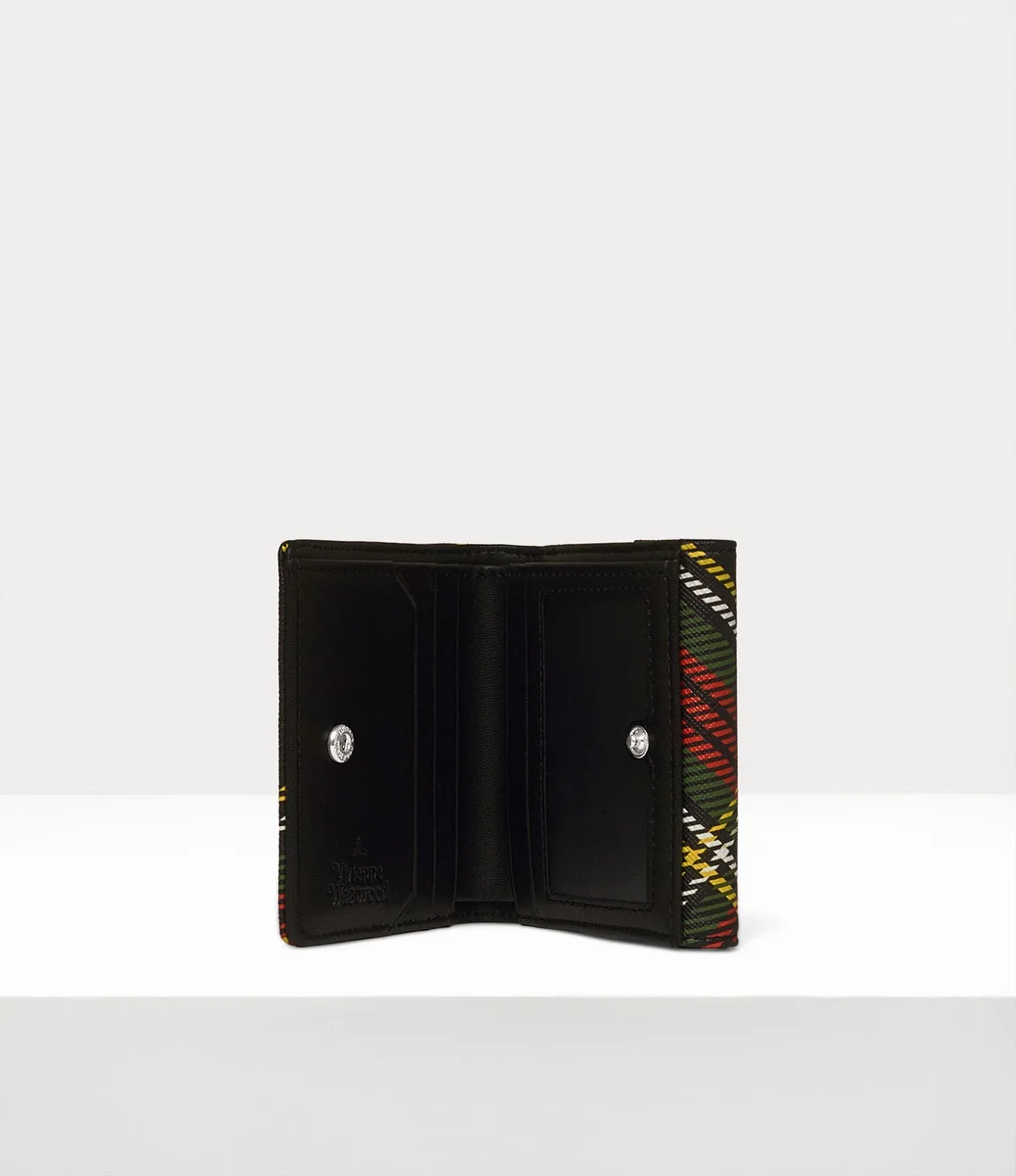 Vår lilla plånbok har fått en ny design med säsongens tartanmönster ”Chelsea”, kompletterat med dämpade toner och klassiska silverfärgade detaljer. Plånboken är prydd med husets signaturmotiv ”Line Orb”, som fångar Viviennes vision om att föra traditionen in i framtiden.