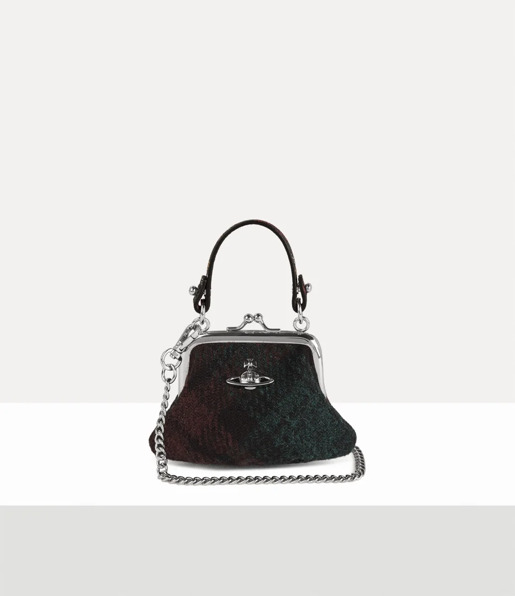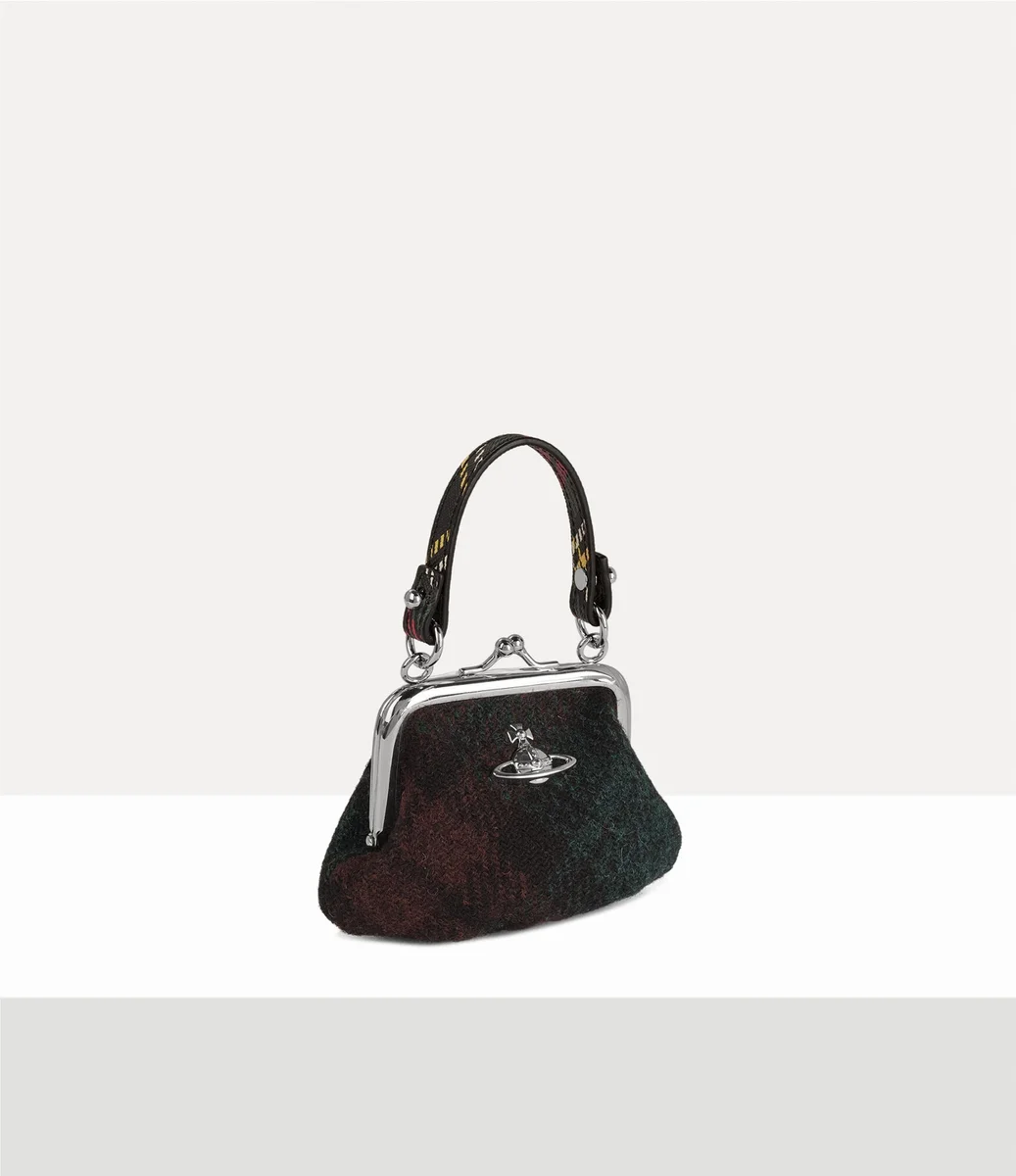 Mini Granny Frame-plånboken är en mindre version av husets ikoniska Granny Frame-plånbok. Den är tillverkad av Harris Tweed, handvävd av hantverkare på de skotska Yttre Hebriderna, och har en mjukt strukturerad silhuett och vårt signaturmönster med flerfärgade kulor, i säsongens tuftade finish.