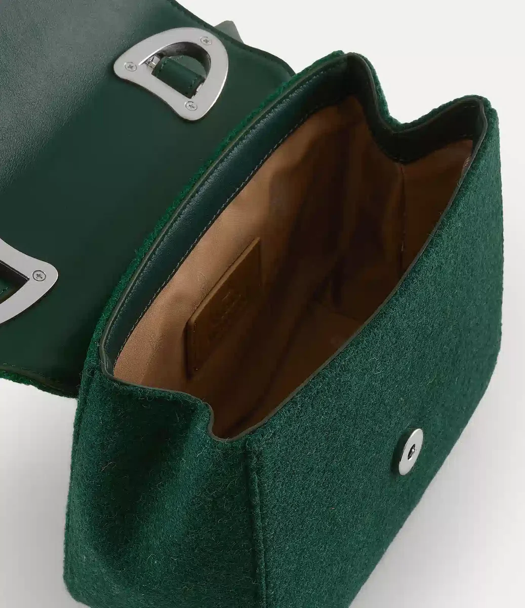 Linda Medium crossbody-väskan återkommer denna säsong i enfärgad ull, skickligt melerad för att uppnå Harris Tweeds karakteristiska struktur. Den presenteras i en mjuk, jordnära nyans som återspeglar det rika och varierade landskapet i de skotska högländerna, och designen är avslutad med vårt ikoniska mångfärgade Orb-motiv, omskapad i säsongens tuftade finish.