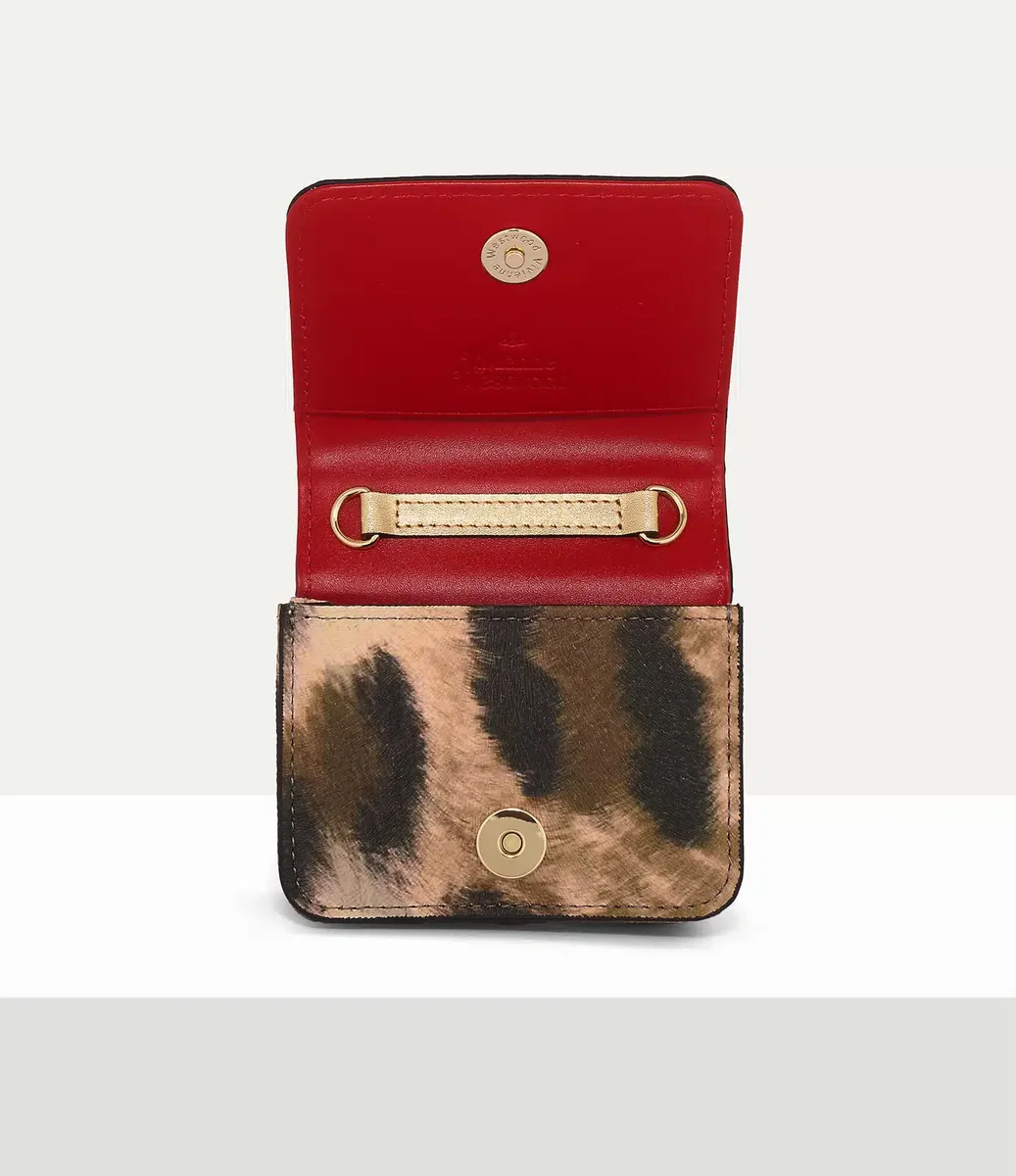 Vivienne Westwood Mini Flap crossbody i PU är prydd med ett djärvt leopardmönster, tryckt med sloganen ”Wild Beauty” och det klassiska orb-emblemet.