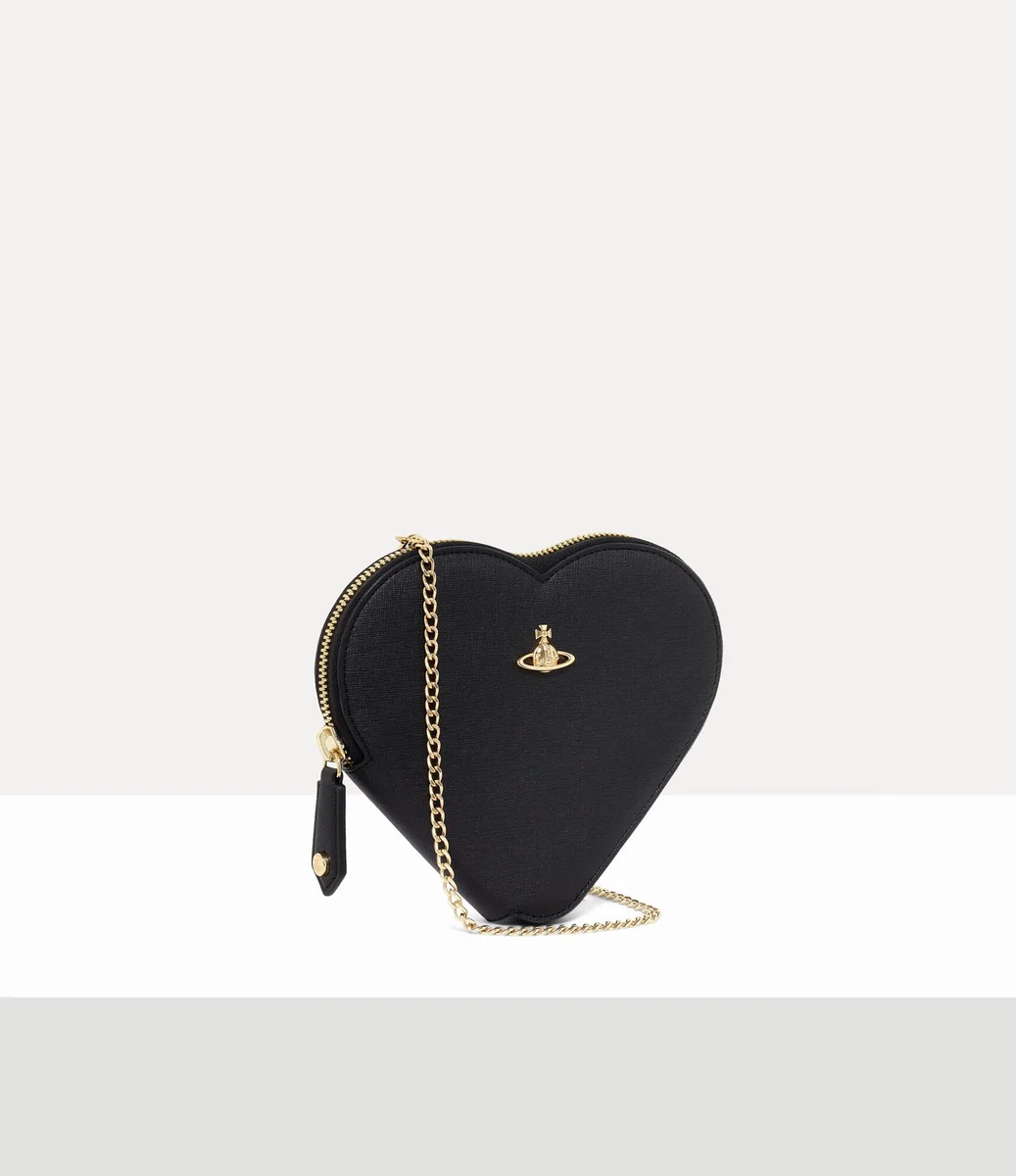 New Heart Crossbody-väskan har en hjärtformad silhuett som påminner om Viviennes kärlek till både mänskligheten och planeten. Väskan har ett ljusguldfärgat orb-motiv på framsidan som symboliserar tradition, omgivet av Saturnus himmelska ringar som representerar framtiden.