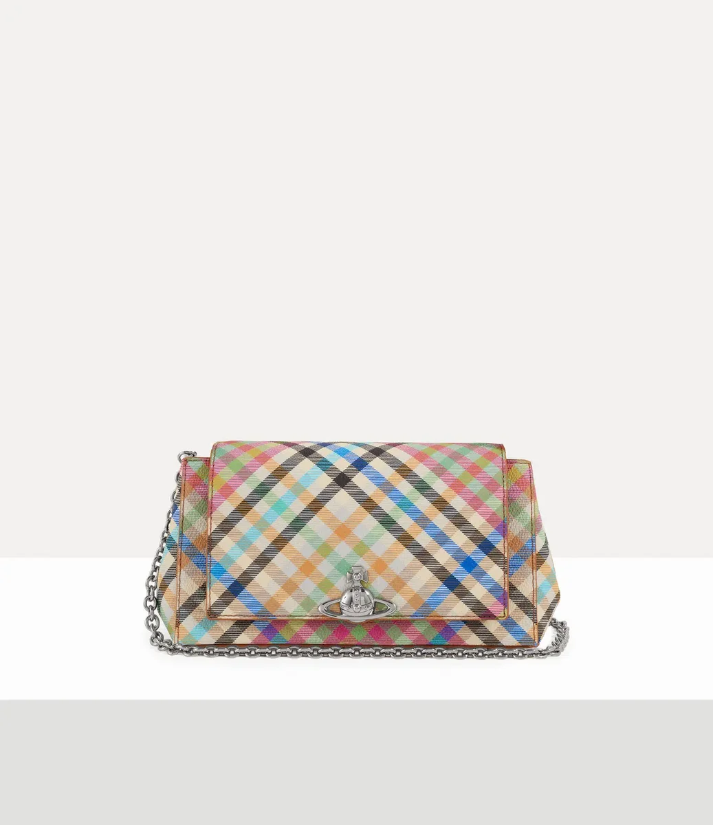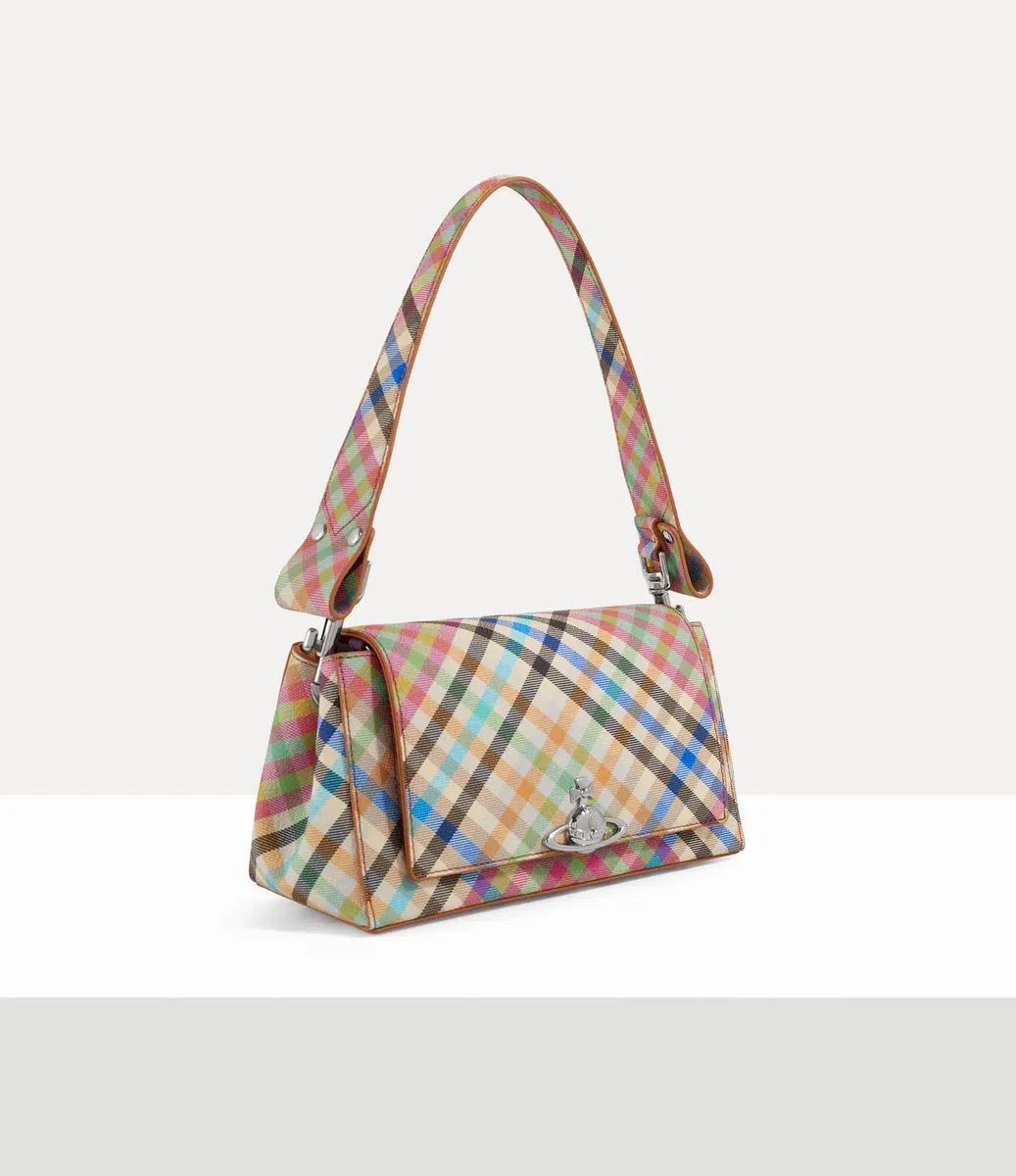 Vår Hazel Medium handväska har fått en ny design denna säsong med det livfulla ”Heather Plaid”-motivet, med ett mångfärgat rutmönster inspirerat av husets rika arkiv. Väskan öppnas och avslöjar vårt arkivmönstrade ”Union Jack”-foder och är avslutad med det karakteristiska tredimensionella orb-emblemet på den främre fliken.