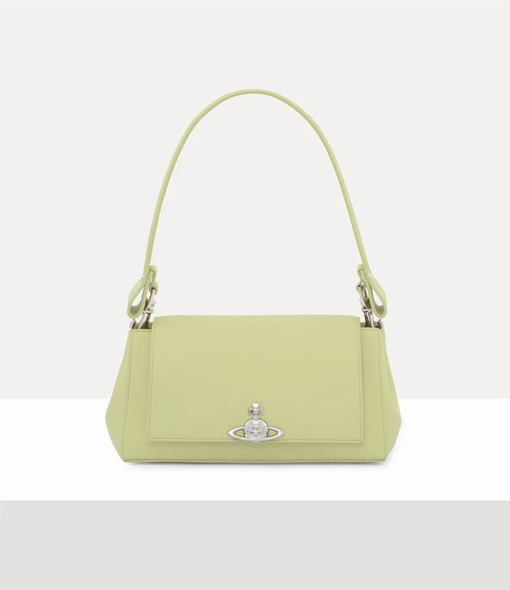 Vår Hazel Medium handväska har fått en ny design i mjukt PU-läder denna säsong, prydd med klassiska metalldetaljer. Fliken öppnas och avslöjar ett mjukt bomullsfoder, medan framsidan är utsmyckad med det karakteristiska tredimensionella globemblemet på den främre fliken.