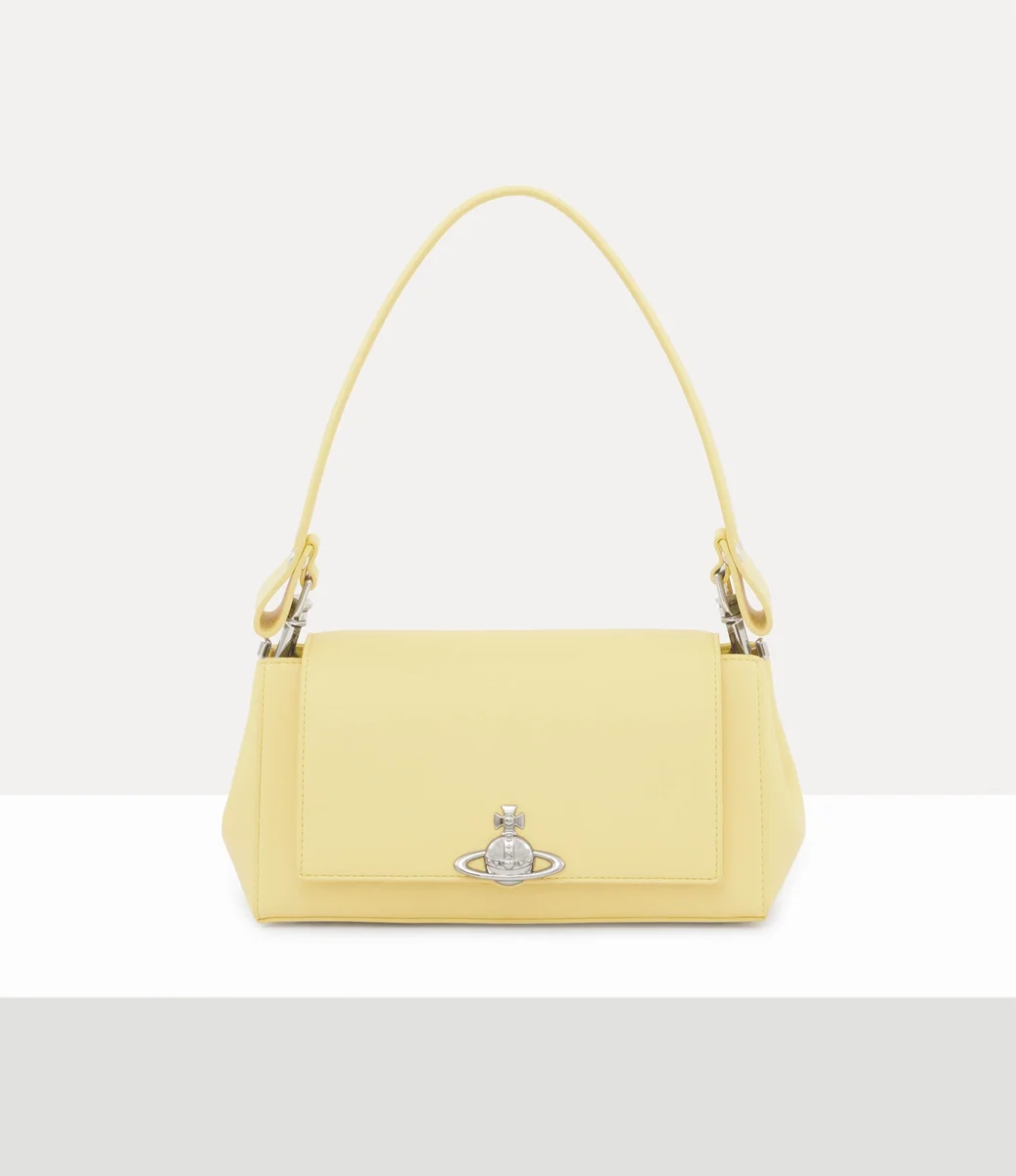 Vår Hazel Medium-handväska har fått en ny design i mjukt PU-läder denna säsong, prydd med klassiska metalldetaljer. Fliken öppnas och avslöjar ett mjukt bomullsfoder, medan framsidan är utsmyckad med det karakteristiska tredimensionella globemblemet på den främre fliken.