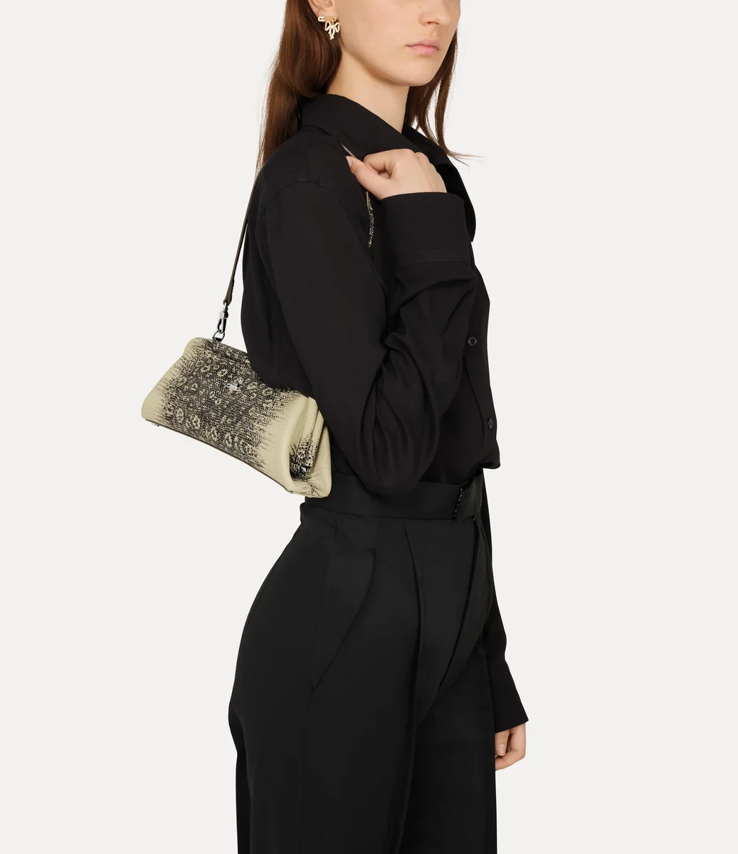 - Håll borta från värme, solljus och fukt. Förvara i medföljande dammpåse på en torr, ventilerad plats när den inte används. Hantera väskor med pärlor, broderier eller metalldetaljer försiktigt. Rengör med en mjuk trasa och undvik slipande ytor, lösningsmedel, handkrämer och parfymer.