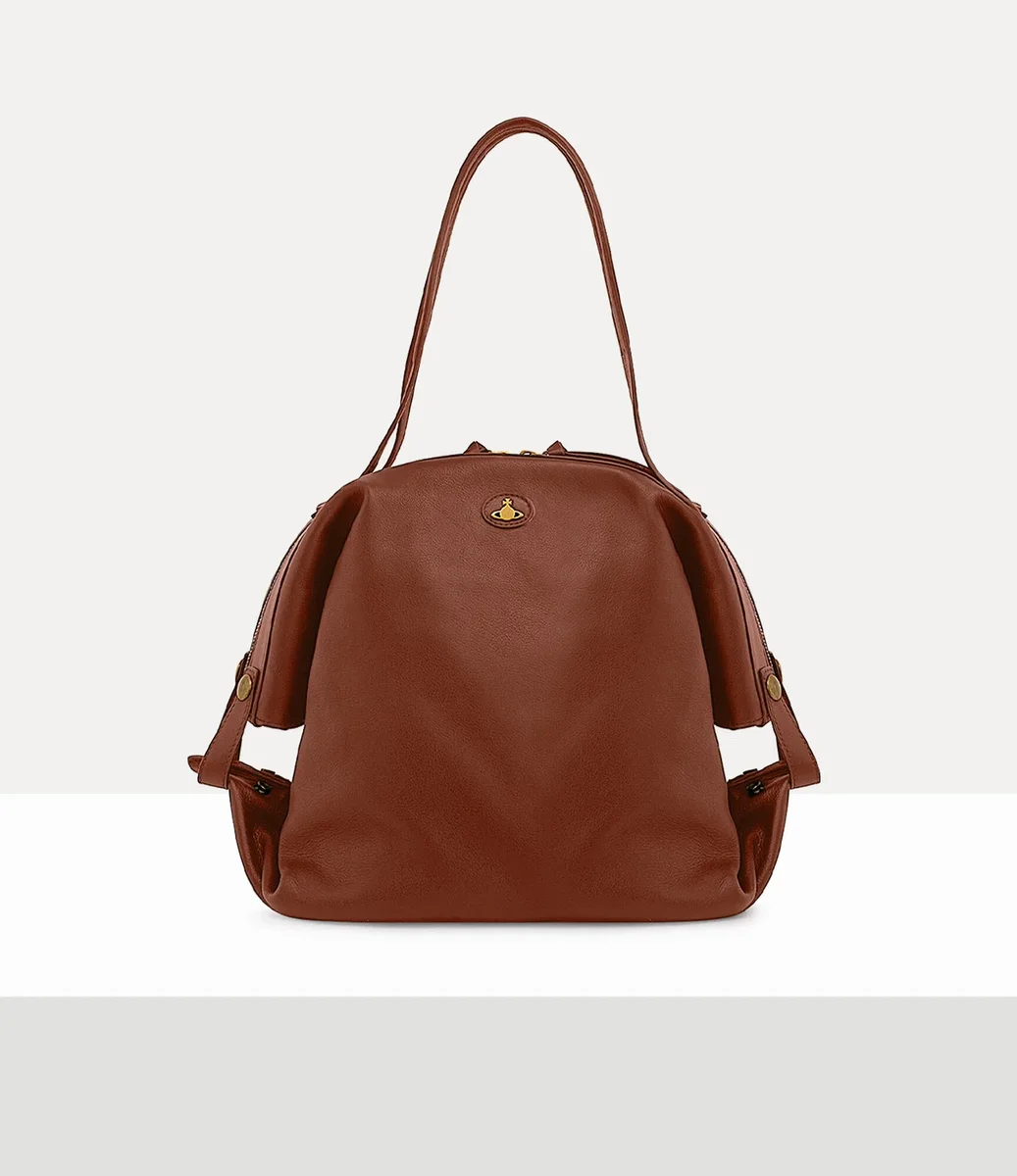 Vår Mara Large holdall är tillverkad av mjukt läder och har en arkivdesign som först sågs i Vivienne Westwoods kollektion ”On Liberty”. Den är uppkallad efter Andreas Kronthalers mor och har vårt förädlade ”Silhouette Orb”-märke.