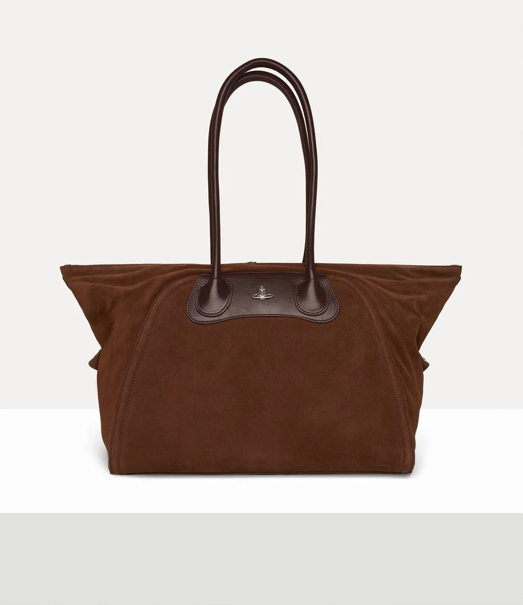 Vår Shirley Holdall är inspirerad av den ikoniska Yasmine-silhuetten och den avslappnade elegansen hos en picknickfilt. Den är tillverkad av mjukt mocka med detaljer i slätt läder och har husets mini-basorb-emblem på framsidan.