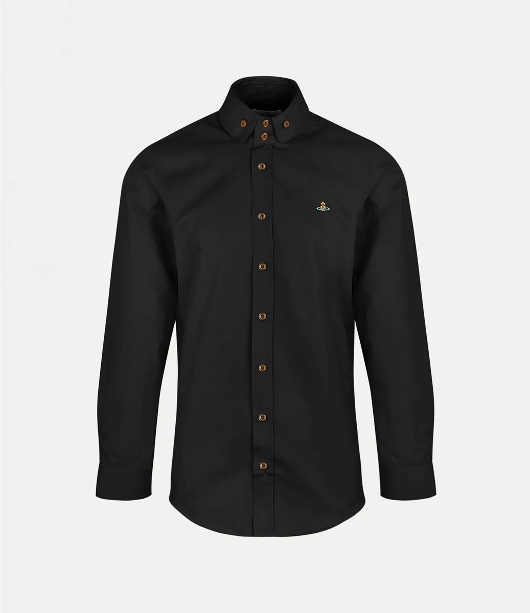 Silhuetten på Two Button Krall-skjortan är inspirerad av en arkivdesign med Viviennes ikoniska krage med två knappar. Plagget har vårt signaturbroderi på vänster sida av bröstet – synonymt med Viviennes vision om att föra traditionen in i framtiden.