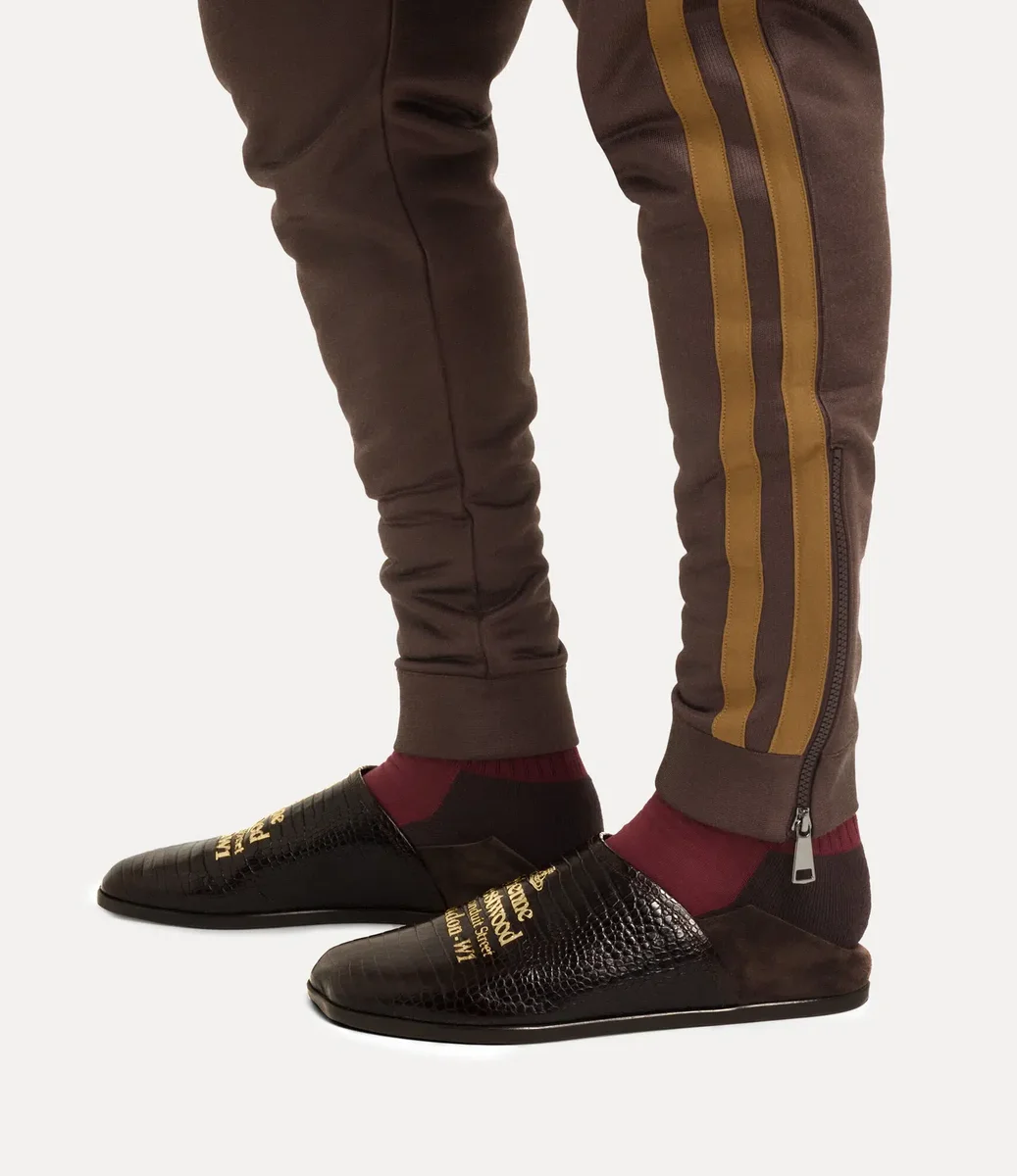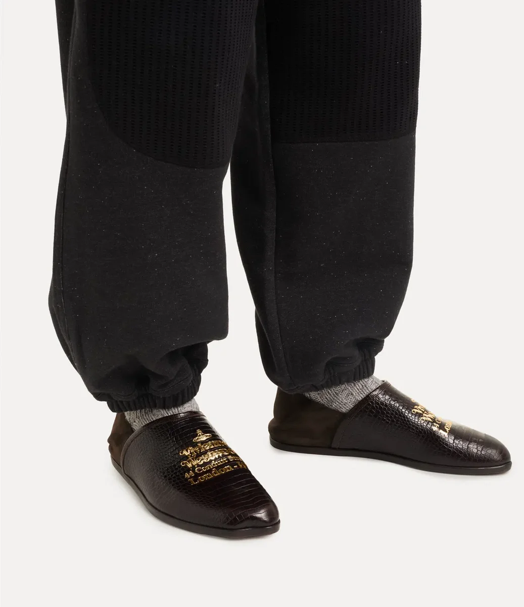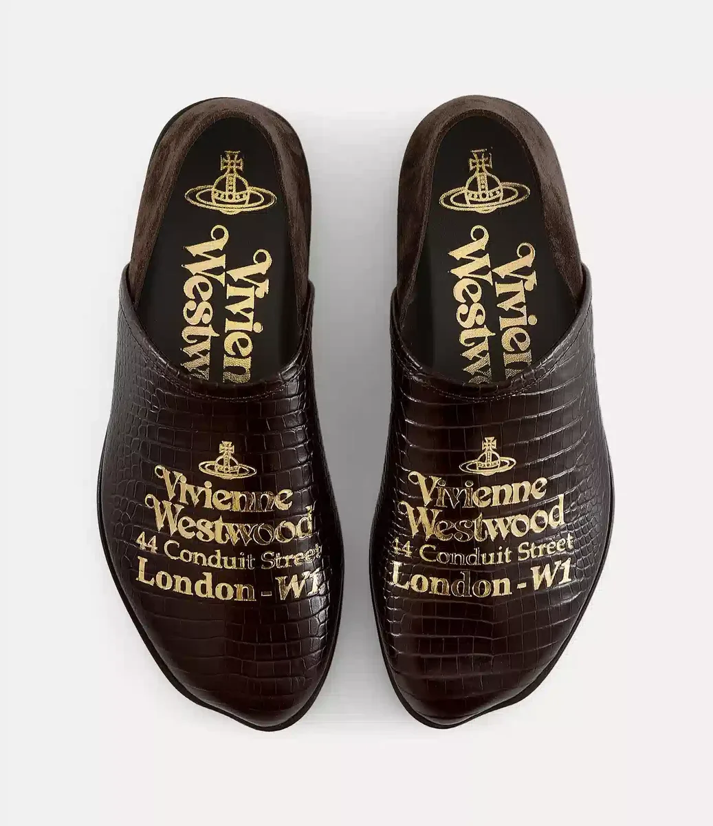 Vår klassiska Tuesday Slipper har fått en ny design i läder med mini-krokodileffekt och en flexibel bakdel som kan bäras upp eller ner. Den är designad med vår signaturformade anatomiska silhuett, som påminner om de klassiska Animal Toe-skorna, och har vår London-flaggskeppsadress präglad på framsidan.