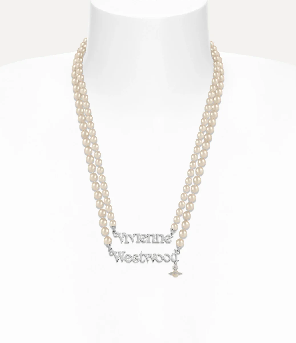 Vårt silverfärgade Man. Emilio-halsband har två rader av glittrande Swarovski-pärlor som ger en känsla av storhet och lyx. I mitten har designen det karakteristiska ”Vivienne Westwood”-bokstavsmotivet, från vilket en hängande pärlklotcharm hänger.