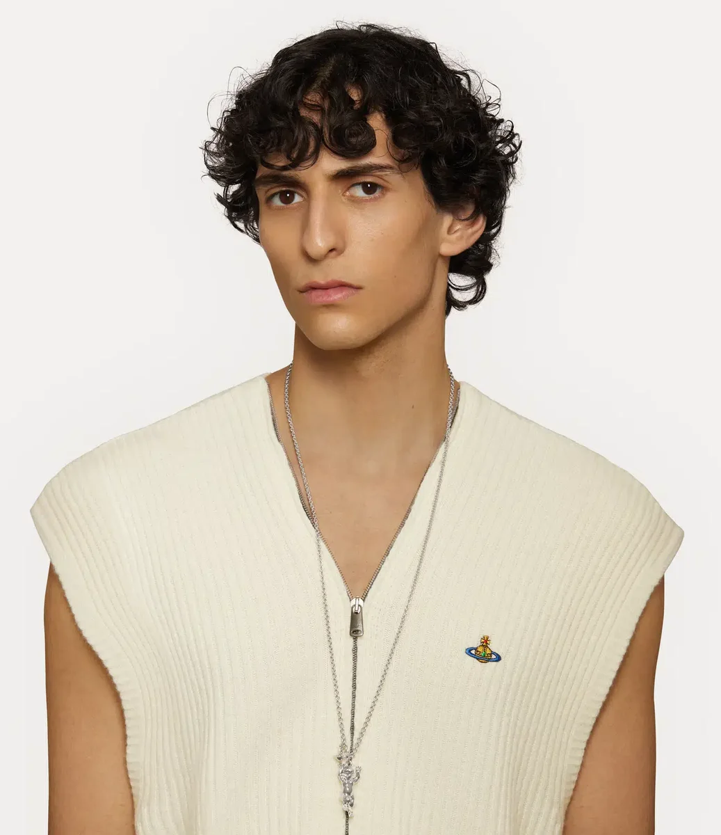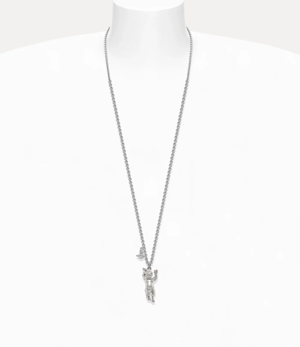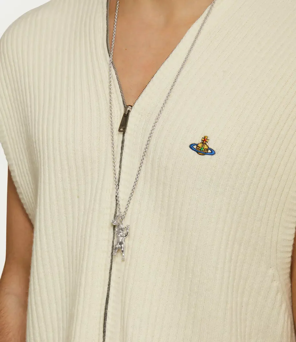 Man. Satyr Pendant Necklace har ett slående satyrmotiv i mitten, som är en hyllning till de traditionella designerna från Viviennes ikoniska ”Britain Must Go Pagan”-era (1987–1990). Smycket är prydt med silverplätering och har vårt signaturmotiv med en dinglande kula längs den raffinerade kedjan, vilket förkroppsligar husets etos att föra det förflutna in i framtiden.