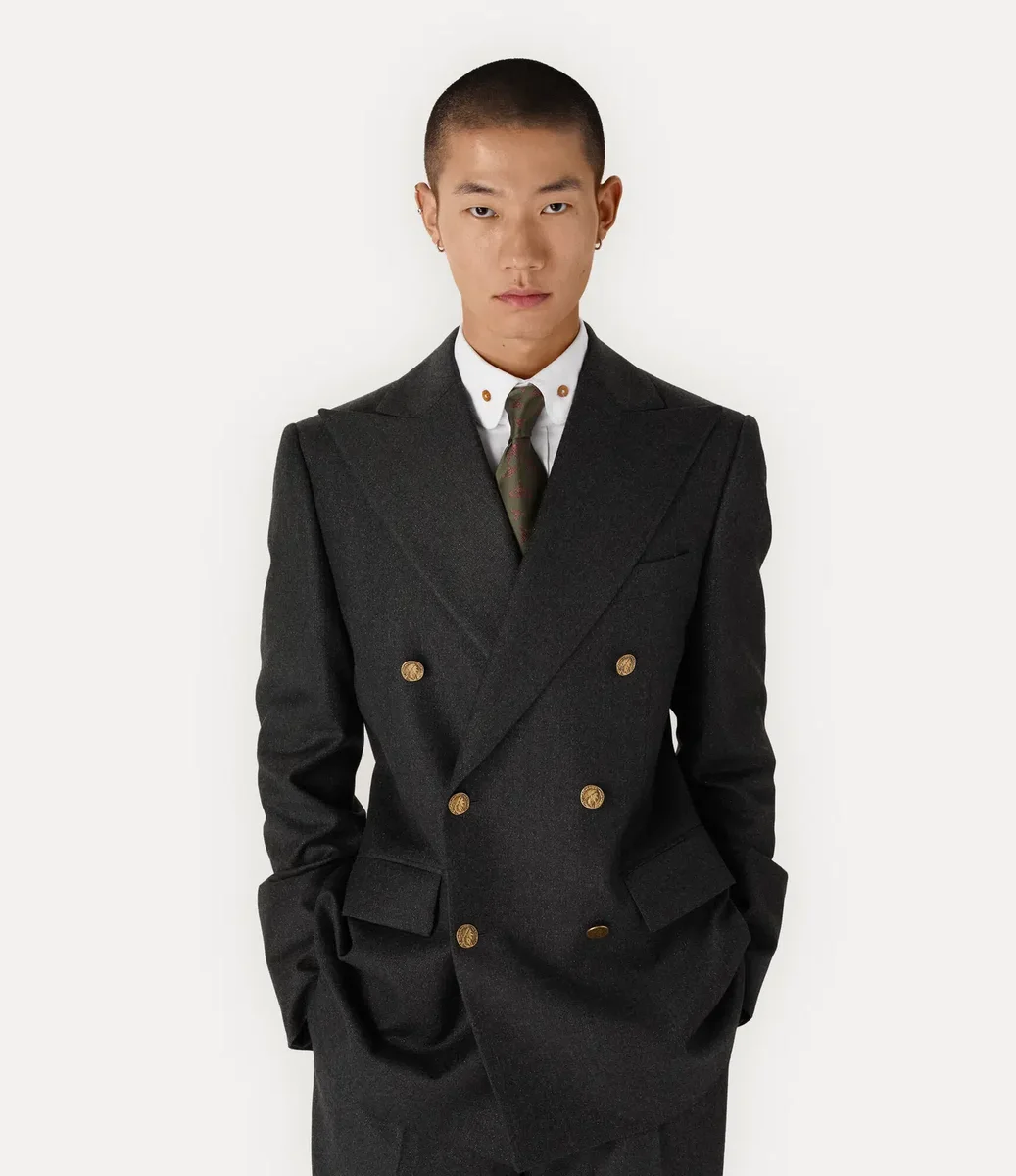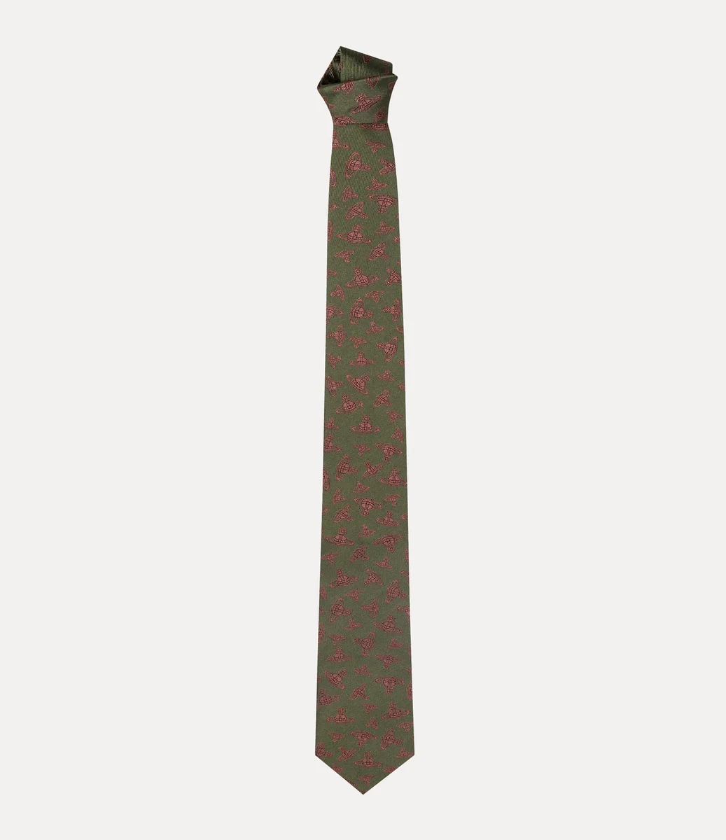Vår slips har ett djärvt, upprepat ”Logomania”-mönster, inspirerat av husets signaturmotiv, globen. Designad med en bred bladform som smalnar av till en klassisk spetsig ände, speglar plagget husets etos att föra det förflutna in i framtiden.